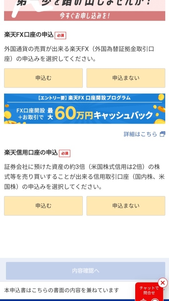 그리고 마지막으로 FX거래, 신용거래를 신청할지 물어보았고, 난 원래 한국에서 주식을 할 때도 둘 다 사용하지 않았으니, 이번에도 신청하지 않음을 선택했다. 여기까지 모두 선택을 하면 다음 화면으로 넘어가게 되고, 무사히 신청이 되었다고 창이 뜨며 메일이 날라온다.