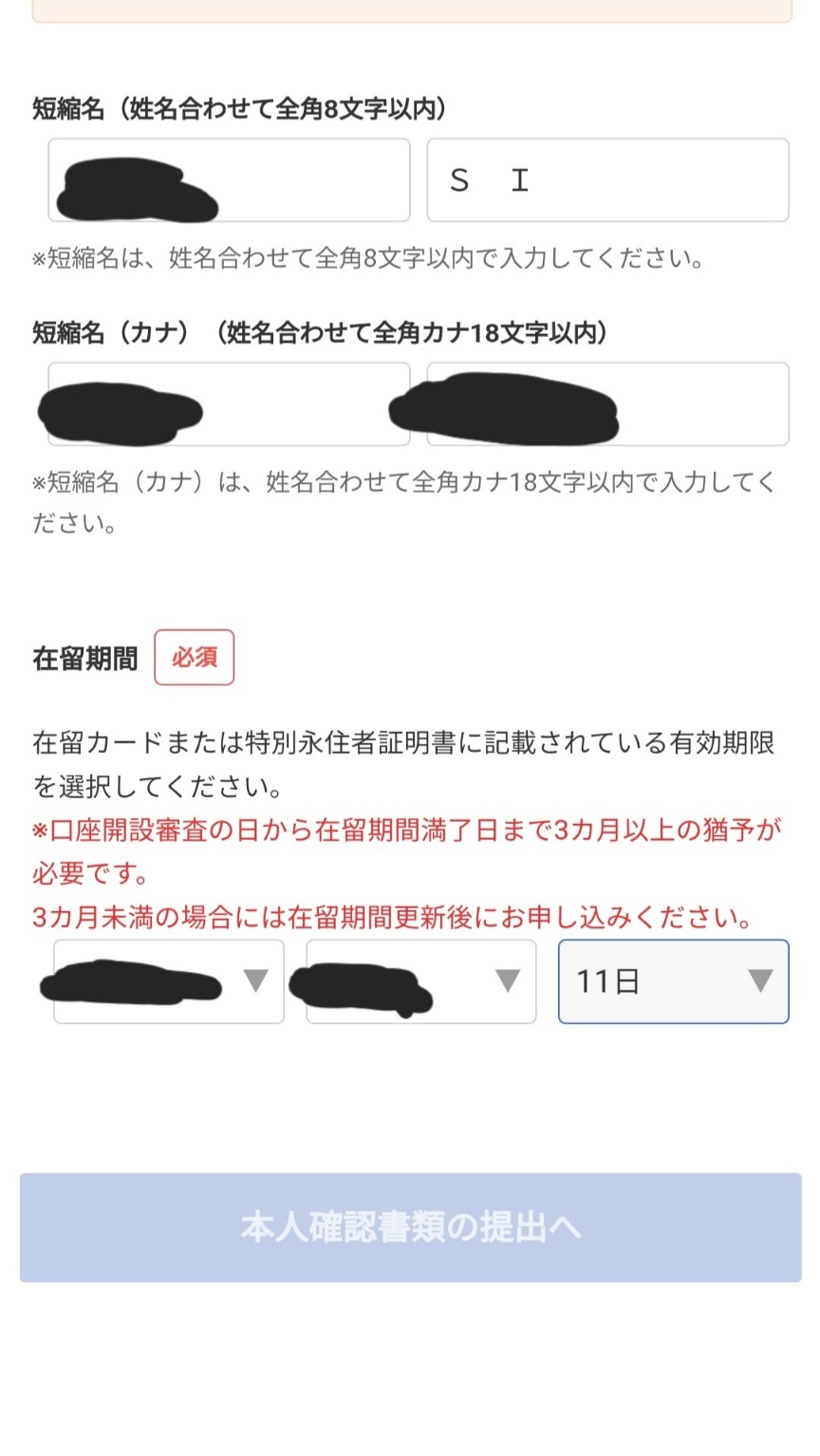 그러면 자동적으로 단축명이 생성이 되는데, 성과 이름을 합쳐 8자까지라는 제한이 생겨 영문으로 작성한 이름이 잘리게 되었다. 이 단축명은 우편물 등이 날라올때의 수령인 이름으로 적힌다고 하여 이름을 이니셜로 작성하였다(결과적으로 통과되었으니 문제없는듯). 그러면 재류카드를 앞면과 뒷면을 올려주면 되고, 그 다음에는 주소를 작성하는 창이 뜬다. 기본적인 주소를 입력하고, 밑에 가나를 적는 부분에 주소를 발음대로 입력하면 된다.